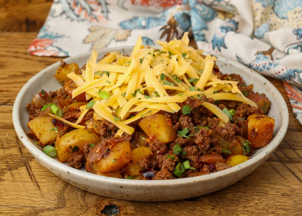 Spicy ground beef, tender potatoes, bell pepper, and onion come together in a simple skillet meal that will leave everyone grinning around the table.